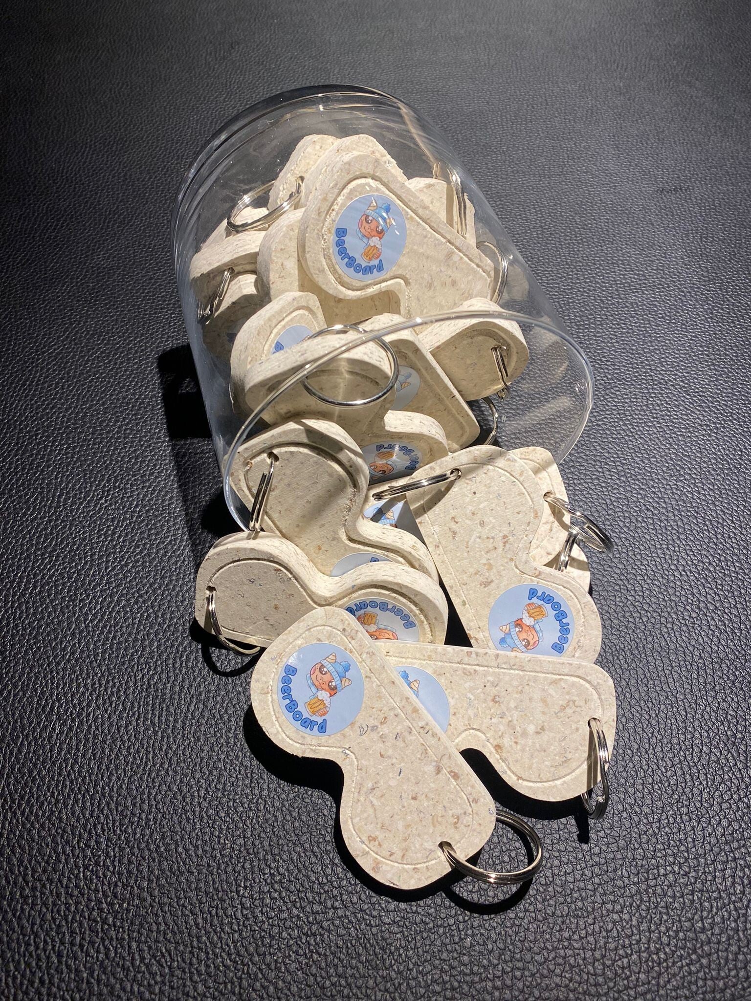 Deze sleutelhangers worden vervaardigd uit gerecycleerd materiaal Purenit, afkomstig van restmateriaal uit het productieproces van onze drankenhouders en tapasplanken. Dit zorgt ervoor dat er geen materiaal verloren gaat.